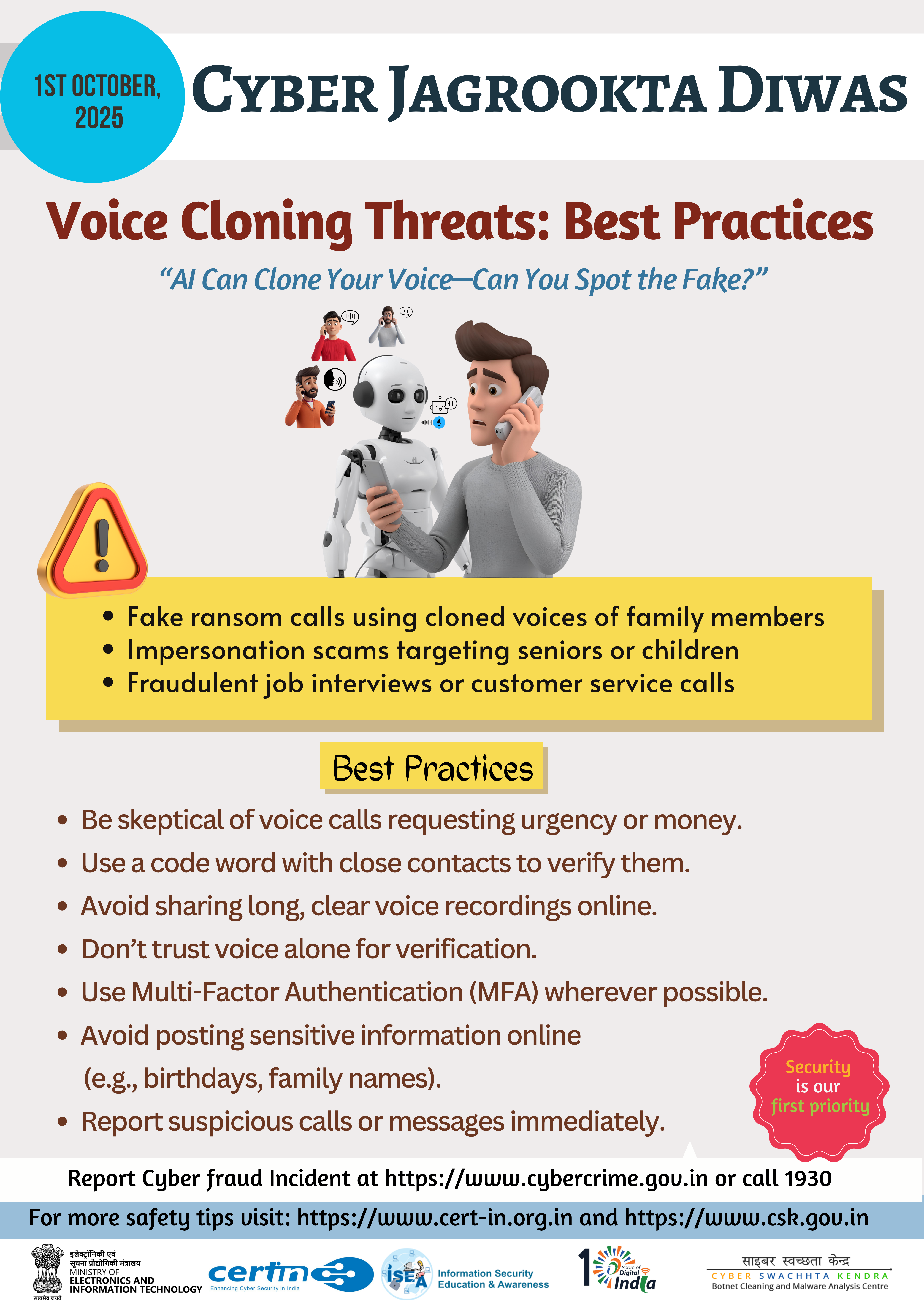 CERT-In is observing 'Cyber Jaagrookta Diwas' on 01st October 2025 to create awareness and sensitize Internet users on safeguarding against cyber frauds and cyber crimes.